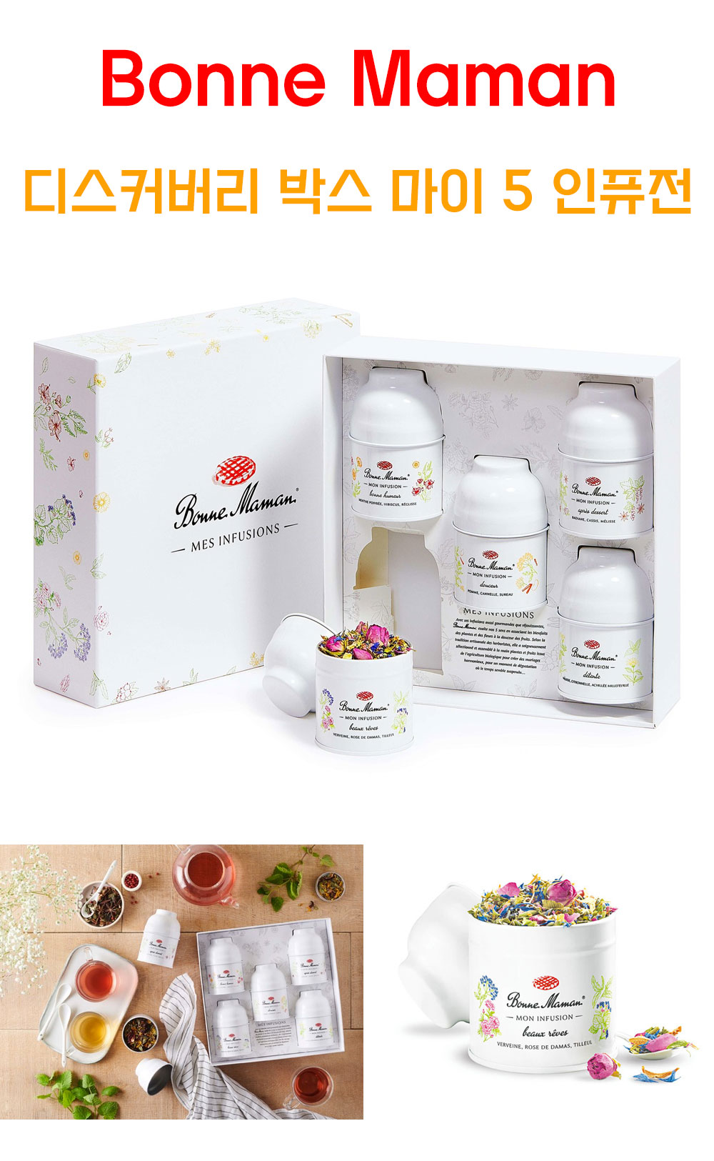 Bonne Maman은 시너지 효과를 내는 유기농 재료로 만든 5가지 인퓨전 레시피를 세련된 상자에 담아 즐거움과 웰빙의 맛있는 순간을 제공합니다. 좋은 유머, 달콤함, 디저트 후, 달콤한 꿈과 휴식을 위한 주입을 찾으십시오.