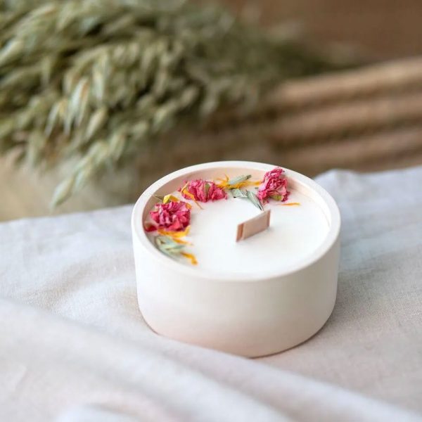 드라이 플라워로 세심하게 장식하고 아마 플라워로 섬세하게 향을 냅니다.